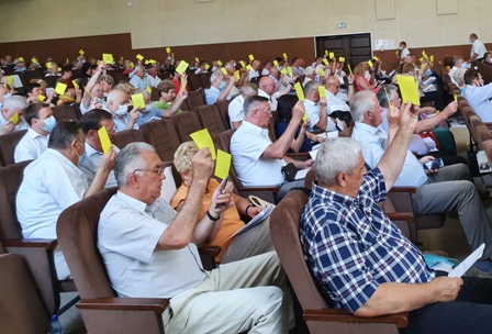 Звертаючись до членів Ради Голова ФПУ Григорій Осовий зокрема зазначив, що час від проведення 8-го з’їзду – 25 травня ц.р. видався для профспілкового руху динамічним та насиченим. Було розроблено: План заходів щодо реалізації Стратегії діяльності Федерації на 2021-2026 роки» «Час дій та якісних змін», заходи щодо реалізації зауважень та пропозицій делегатів з’їзду, підготовлено зміни до Положення про постійні Комісії Ради ФПУ, сформовано пропозицію щодо персонального складу та створення Робочої групи Ради ФПУ з напрацювання змін до Статуту ФПУ тощо. Документи з’їзду (як визначено його постановою) були направлені Прем’єр-міністру, Голові Верховної Ради України, Уповноваженому Верховної Ради України з прав людини, керівникам центральних органів виконавчої влади, депутатським фракціям, соціальним партнерам для врахування в їх діяльності. Голова ФПУ наголосив, що заходи на виконання Стратегії діяльності ФПУ мають стати для усіх профспілкових організацій Дорожньою картою реалізації стратегічних завдань, насамперед щодо посилення економічного, правового і соціального захисту спілчан в умовах реформ, розвитку профспілкового руху та зміцнення потенціалу всіх ланок профспілок, щоб діяти ефективно та результативно. Також члени Ради були поінформовані про створення Робочої групи ФПУ з питань опрацювання законопроектів, які суттєво звужують права та інтереси працівників і профспілок, для представлення позиції ФПУ у профільних комітетах Верховної Ради України, а також засобах масової інформації, та утворення Організаційного комітету ФПУ з проведення всеукраїнських акцій протесту профспілок у разі розгляду Верховною Радою України законопроектів, які порушують права працівників та профспілок. - Саме на осінь може припасти пік нашої боротьби проти анти трудових ініціатив влади, - наголосив Григорій Осовий, - ми маємо бути максимально готові і відмобілізовані до таких дій по всій країні. Після виступу Голови ФПУ відбулась презентація заступників Голови щодо напрямів діяльності Федерації з досягнення її стратегічних цілей і виконання завдань. До членів Ради ФПУ звернувся голова Об’єднання профспілок Грузії, президент Всеєвропейської Регіональної Ради МКП Іраклій Петріашвілі, поінформувавши присутніх про реальність грузинських «ліберальних» реформ, які привели до збідніння широких верств населення , соціальної несправедливості, безробіття та трудової міграції, звуження прав людини праці у Грузії. Після обговорення виступів члени Ради ухвалили із зазначених питань відповідні постанови.