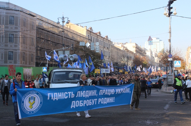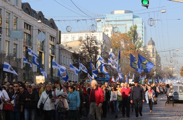 17 жовтня у профспілковій колонні представлена майже вся Україна – провідні галузі промисловості, західні, східні, центральні та усі без виключення області. Біля 15 тисяч трудівників, які рішуче вимагають від влади: РОБОТУ, ЗАРПЛАТУ, ГІДНЕ ЖИТТЯ! Серед них - 500 профспілковців Київщини.
