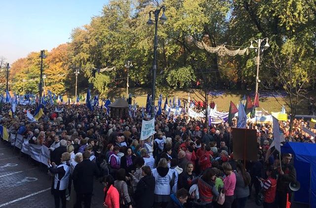Велетенською ходою спілчани пройшли центром Києва, виступаючи проти зростання цін, непосильних тарифів, закликаючи Уряд і роботодавців повернути борги по зарплатах, забезпечити українців робочими місцями, гідними зарплатами, належного фінансування медицини та освіти в Держбюджеті, припинення рейдерства профспілкового майна.