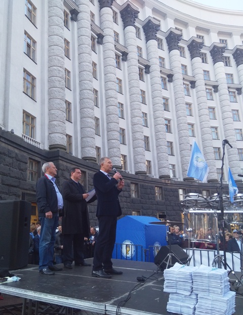 На мітингу в Урядовому кварталі перед пікетом виступили Голова ФПУ Григорій Осовий, Голова профспілки шахтарів України Віктор Турманов, голова Київської міської організації Профспілки освітян Олександр Яцунь та багато і багато інших представників трудових колективів – працівників бюджетної сфери, виробничників.