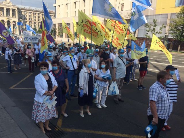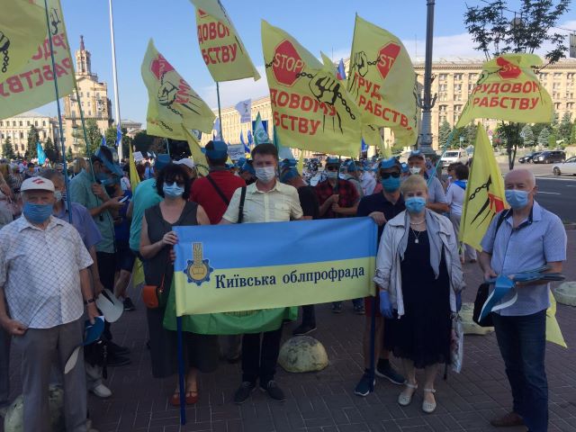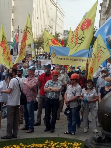 Профспілковці Київщини на попереджувальній акції протесту у м. Києві 30 червня 2020 року |
