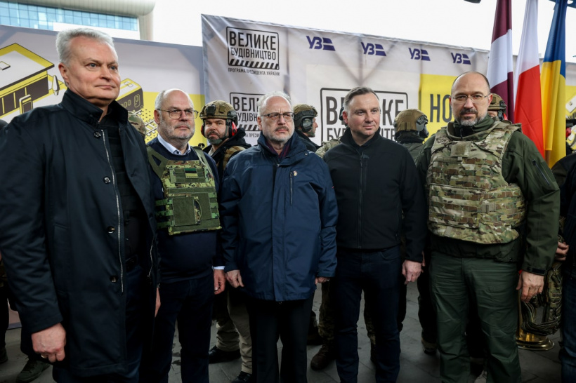 Прем’єр-міністр України Денис Шмигаль разом із президентами Естонії Аларом Карісом, Латвії Егілсом Левітсом, Литви Гітанасом Науседою та Польщі Анджеєм Дудою 13 квітня відвідали розбомблене росією смт Бородянка Київської області.
