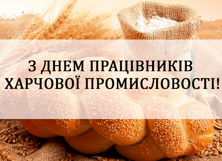 Підприємства харчової та переробної промисловості відіграють провідну роль у забезпеченні населення продовольчими товарами. Працівники цієї галузі постійно освоюють нові види продукції, розширюють асортимент, поліпшують якість товарів. Вітаємо з Днем працівників харчової промисловості усіх, хто забезпечує нас смачною й здоровою їжею, тих, хто тільки опановує професію харчової галузі, хто навчає студентів і досліджує якість продуктів!