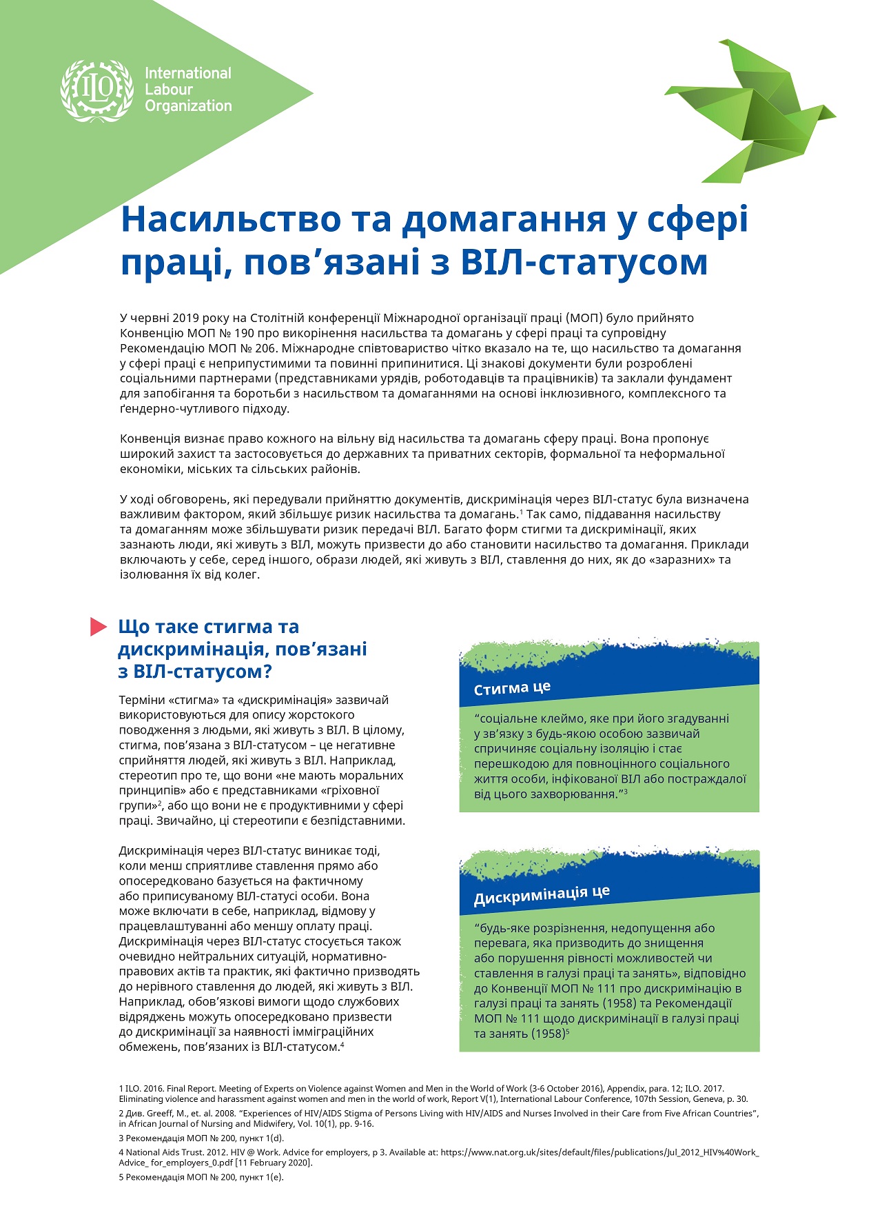 Насильство та домагання у сфері праці, пов’язані з ВІЛ-статусом |