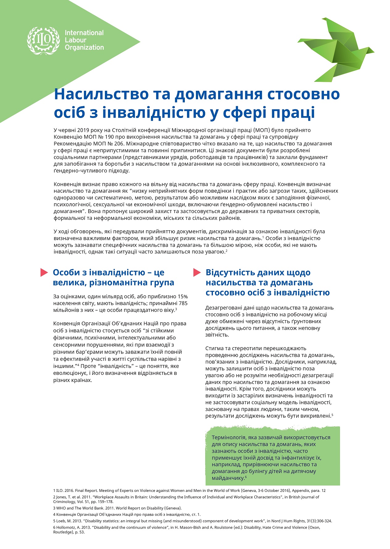 Насильство та домагання стосовно осіб з інвалідністю у сфері праці |